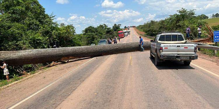 O Liberal – Uma árvore castanheira centenária foi derrubada por manifestantes para bloqueio total do km 312 da BR-163, em Novo Progesso, no sudoeste do Pará. O caso ocorreu na manhã da sexta (4) e, no mesmo dia, o vegetal foi retirado do local com o auxílio de um trator, mas a via permaneceu parcialmente bloqueada até a manhã de sábado (5).