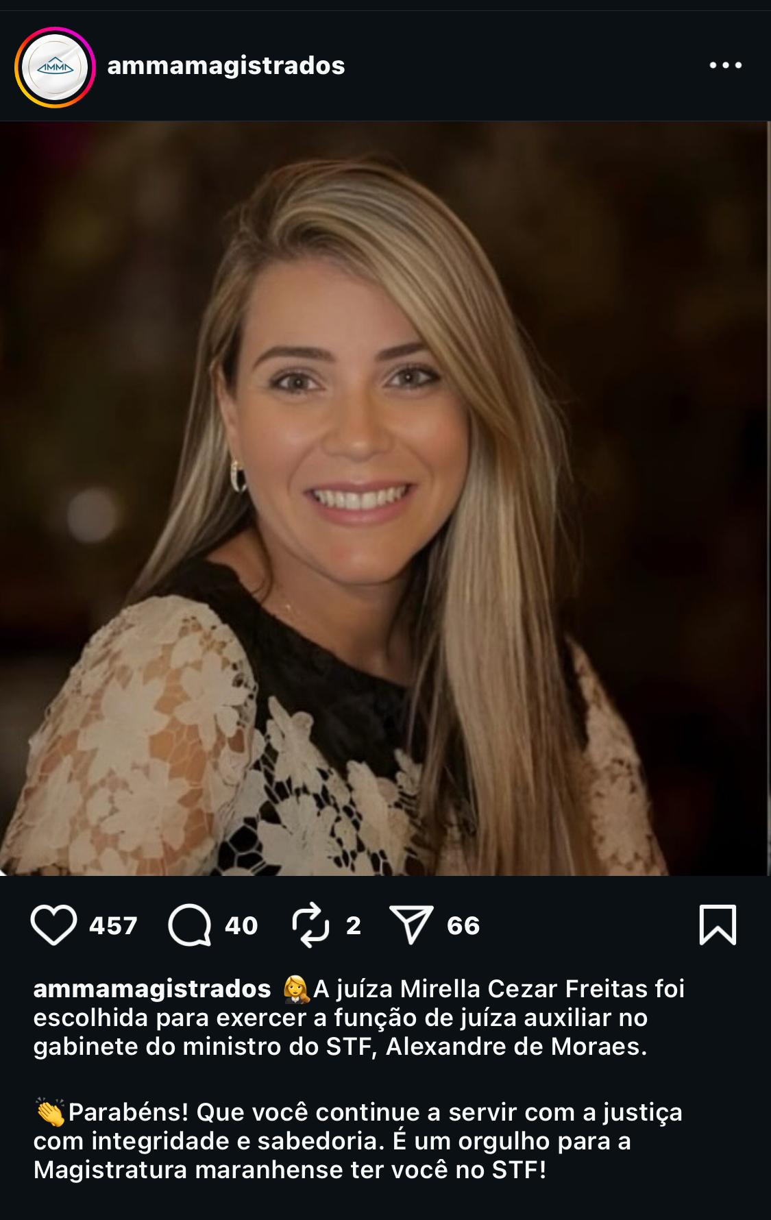 Desde o dia 22 de outubro, a magistrada já está exercendo suas funções no gabinete do ministro Alexandre de Moraes. A Associação dos Magistrados do Maranhão (AMMA) parabenizou Mirella, ressaltando o orgulho da magistratura estadual e desejando que ela continue atuando com integridade e compromisso.
