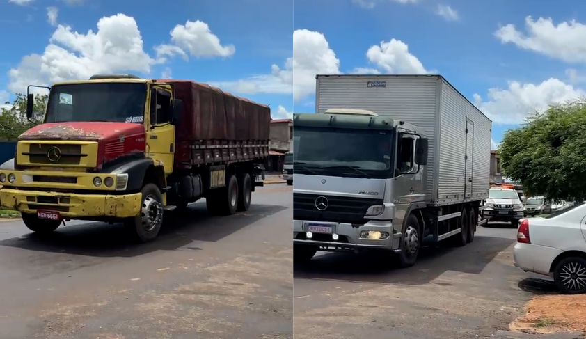 desviada. O veículo modelo Mercedes Benz 2425 de cor prata, com placa de Timon,